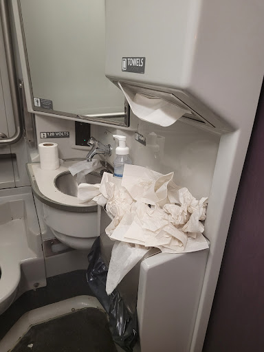 Read moreI am currently on train no#80 heading north. I've had the worst experience riding the train North and South. Most of the crew are nasty and unhelpful! First, I explained to the Conductor when I got on at Durham, NC that I'm disabled, although I do not have the disabilities that are listed on their site, which is blindness, deafness and being confined to a wheelchair, but he was nasty and told me to take the seat behind the seats available for Persons with Disabilities. I asked him if I could sit there until someone got on with a wheelchair. He said, "NO!" So, I had to call Amtrak and speak to someone about what my disabilities are, and they noted on my account. Firstly, these seats are available ANYONE. The sign Stat you might be asked to move if a person who is disavowed gets on. See pic below. The next thing: THE BATHROOMS! The Attendants are not staying on top of cleaning them! They go in and spray the cleaner and leave. Toilets became stopped up several times I hadn't taken the train in years, and I planned to do work on my labtoo, but after all these things and frustrations, my time was little. Their commercial gives a false impression of a "relaxing trip," and most of the employees act like they're doing you a favor and that you didn't pay for your ticket! I will NOT be riding on Amtrak again!! Look at how they expect paying customers to use the bathroon, and see how their employees sit back...