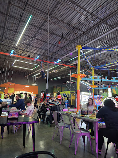 Read moreFantastic place! Not quite as many trampolines as the Orono trampoline park. But many extra things to do. And there is a good variety of trampolines, including the one where you bounce into a huge air bag. The Sky Rider is the bomb. The huge climber/play area is great for younger ones. Also the aerial ropes course was fun. The obstacle courses are great too….four of them with varying difficulty (and all very safe, as they have ball pits for floors). Our kids are 5, 9 and 13…all had a blast. (My wife also bought the half-price parent pass just so she could stay close to our youngest….she probably didn’t need it but we thought it was fair for us to buy one. I just wandered around and helped our other two or cheered them on, but nobody asked if I had a pass.) we bought the Ultimate day pass which was on sale for $21 for each kid over five. It was worth it! (Age five and under is $11). It was busy but not too bad. It is fairly dark with lots of neon lights, etc. It would be good if it was a bit brighter for when you are looking for your kid. They were a bit understaffed like everyone. But the staff were working hard and did a good job. They were good with the kids. No hooligans or jerk kids were observed. We spent three hours there and loved it. We only bought drinks so can’t speak to the food. Played a few video games, which were good. Loved this place, and we will return! Update April 2024: our most recent visit was also fun. It was on a Friday….got there at noon right at opening time. We enjoyed it even more this time because it was less crowded. It’s expensive (we got the ultimate package) and cost almost $100 for three kids, including socks. We stayed for two hours and had a blast. The safety seemed very good. Staff was pretty helpful, but they could work on being a bit more cheerful with the kids. Mostly they just acted like they didn’t really enjoy what they were doing. We also had lunch there…. It was pretty good but, again, a bit expensive. This location has some really awesome activities. (We skipped...