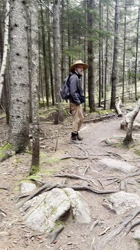 As a fairly fit senior who read reviews that this trail was “easy” I would say that this is not the case. It’s more of a moderate level trail with many uneven areas stepping through boulders patches and uneven surfaces. The start of the ascending trail head had me scrambling and navigating large boulders, large areas of rock shoulders, exposed roots and slick rocks (be careful when wet). The rest of the path was similar throughout the hike with sections of boulder scrambling, rock steps, narrow passages and exposed tree roots. We took the optional Cadillac trail (located after the metal commemorative plaque on the right fork - look for the sign!) on the accent. It’s easy to miss as the blue blaze is not well marked but there is a sign post. The Cadillac trail featured a narrow squeeze entry, many steep narrow rocky steep steps around rocky bluffs, an old cave and metal rung bar rail steps with metal rung hand holds. The summit offered nice views although on our day mist and fog kicked in offering a calm meditative feel as the sea bell buoys called to us from below. Recommend Wearing hiking shoes! Definitely not a flat easy path. Note that if coming off the Beehive trail this trail connects for a more gradual decent. I would not recommend Cadillac coming down. It took us about 2 hours up - in and down - out from the trail head. Small parking area at trail head. ...