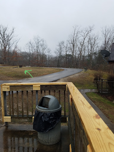 The cabin was beautiful and quite comfortable. The staff were very nice and helpful. Off season, for one night (2 separate discounts were figured in and change frequently, I was told) $137. That's for 2 bedrooms, 2 adults and 1 child. You can rent cots for $10 additional. The road to drive there is paved, but quite narrow and a steep grade. We rented because I had never been here and I wanted to hike a bit. I will come back to hike the other trails (the one we did was well marked and maintained), but I can't imagine the lake makes camping or staying in a cabin here anything out of the ordinary. The campsites all appeared to be quite close to one another and without any privacy at all, though they were very close to the water. I'm sure there are some who love this location, it's just not my cup of tea. Pictured is cabin 6, the last one in the string. Green arrow points to outside firepit. There is also an outside grill and a back porch for the view. All...