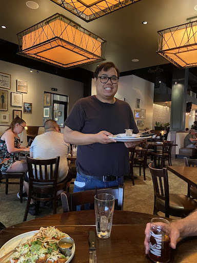 Read moreYou have to have a burger here! it will change your life! I was not expecting to eat burger at this place when I arrived, I was expecting to have a steak or maybe some pasta but the moment I asked our server what this place is known for he said "hands down our burgers." At that point I decide to ask him my favorite question, WHATS GOOD HERE? He pointed to the Smoke Daddy IPA BBQ burger. I accepted his recommendation and ordered some calamari to start. Walking in, this place looks fancy but once your sit down you get the feeling this place is super relaxed. My server was super easy to talk to and friendly, he had no problem giving advice and his suggestions on what to try. A friend and I sat near the bar area. My appetizer arrived in the right amount of time, it only took about 5 to 10 minutes and once they arrived we noticed that they looked bigger than your average calamari. We started to dig and noticed that the Calamari were lightly crispy on the outside and had the right amount of chew on the inside. Not rubbery at all, just right! We were impressed. There was enough Calamari for two people to share and not get full or be disappointed in the size. Then there was the burger. OMG I was not ready for the height and flavor from this dish. When the burger arrived it looked like it was made for a camera. The bacon strip were perfectly fried and where just hanging off the burger asking to be eaten first. The bund held everything together nicely and was the right amount of softness and crisp on the outside. Yes you will need to slice this burger in half before you take a bite and man does it look nice when you cut it open. I had my burger cooked to medium which was just right for me. There was plenty of flavor from the meat, cheese, bbq sauce, and that oh so good bacon. The Bacon is the start of this burger and wow was it good. The crispy onions added a nice crunch and brought the dish together. Sadly to say, the fries were lacking flavor. They needed a seasoning salt to really make them standout. With a power house of a burger the fries really needed something to standout. Once I salted them they were okay. My friend order a swiss burger with mushrooms and bacon and she loved every bite. In short the service is relaxed and fast. The Burgers are the best thing on the menu. And the French Fries needs improvement. So would I recommend this place? Yes, but you better invite me and have a burger...