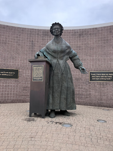 Read moreThere is a 12-foot-high sculpture of Sojourner Truth that welcomes visitors to Battle Creek Michigan. The sculpture was designed by California artist Tina Allen. It was dedicated in Monument Park in 1999.