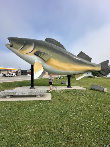 We happened to see Willy the Walleye from a distance and we had to stop! Lucky we were getting gas near by because there isn’t RV parking. Willy’s home is neatly mowed and there is even a selfie station so everyone can take their photo. A little marker talks about this 40ft long Walleye in the Walleye Capital...