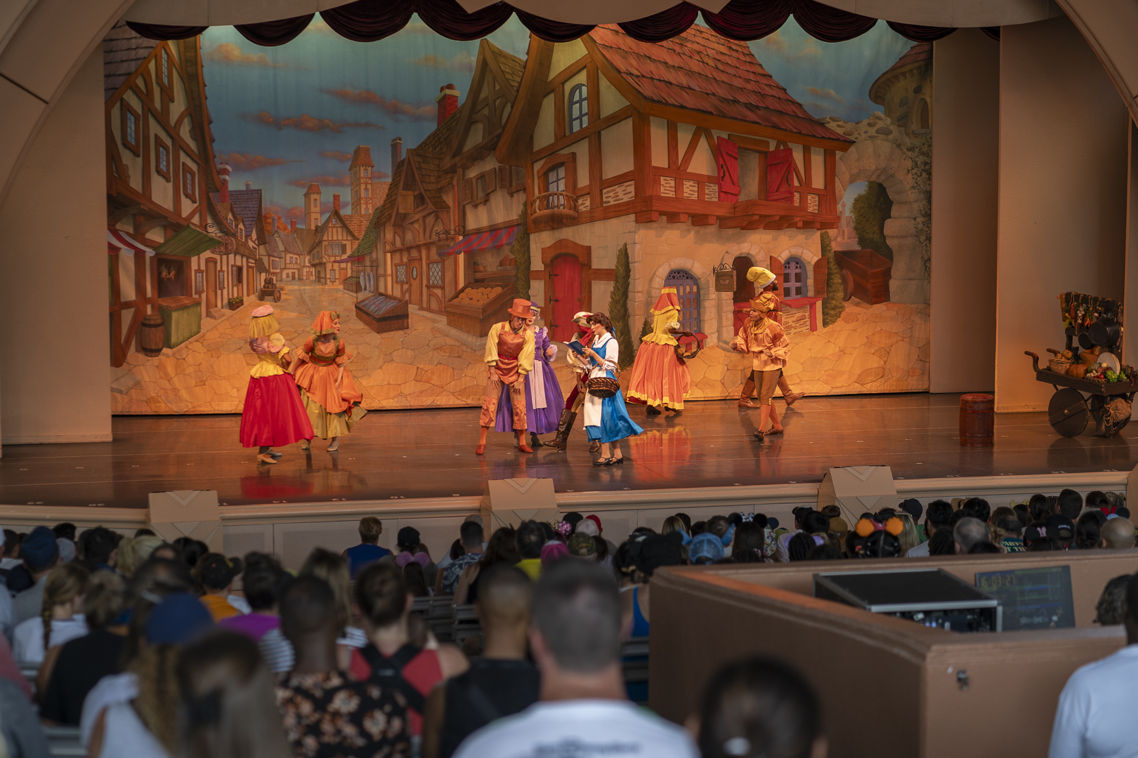 Read moreGreat show – fast moving – great costumes – Good sound and classic story. This is located in Hollywood Studios right before the Rocking Rollercoaster and the Tower of Terror. It is bench seating located from below stage height to about 35 rows away from the stage. I would recommend sitting about 3 rows or more back from the stage since some people in the front row had to lift their children up to see the footwork of the actors/actresses. It is a classic tale told in a fairly fast-moving manner with several remarkably good and quick costume changes. It changed from the last time that I saw this several years ago but the dancing and singing were still captivating. The actor who played Garcon did a marvelous job from beginning to end and made me laugh several times from his mannerisms (like looking at himself in the reflection of the knife). The show is more geared toward the younger crowd but is still entertaining...