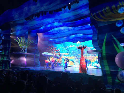 A One-of-a-kind delightful show based on the Finding Nemo movie. This attraction is inside Animal Kingdom requiring you to have access to the park (i.e. you need to buy or have tickets to get into the park). The location is in between Dinoland and Mt Everest in the large building on the south side of the walkway. You can see the show from anywhere in the auditorium. I think the best view is nearer to the front by the stage. It is truly designed to be for kids. As you are waiting for the show to start various ocean facts are presented to make you appreciate the message to protect and save nature. It is a live and unique performance with actors in costume and talking puppets representing the various characters in the movie. The costumes, props, actors, sets, and singing make it truly unique each time you see it. The actors give a great performance and some come out onto the stage in between the seats giving the audience a close-up at various parts in the show. They have bubbles that come down front the ceiling to the front part of the seating at the end of the show so sit near the stage if you want to truly appreciate that. Overall, it is a wonderful show that tells the movie in musical form...
