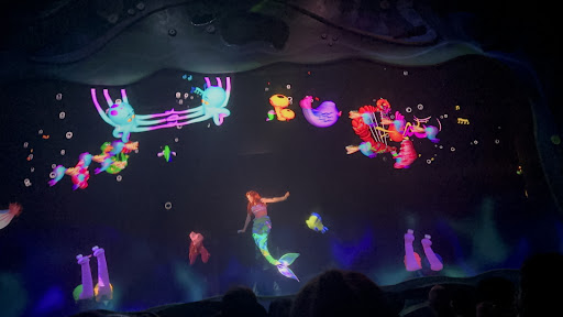 Read moreI love little mermaid, but this show is more outdated than any they have at the park. The running time has been reduced over the decades it's been open, so the "plot" reads as insane and making no sense. Of course they rely on you knowing already, but to skip around so much comes off as hilariously odd. The water effects seem to of been a dumb idea as the carpeted theater has an unpleasant smell to it. My husband won't even see the show with me because of the smell. And the reliance on screens makes sense for scene changes but really could be better and more cohesive. I do enjoy that Ariel is singing live. That's rare and worth the risk of them not being up to par. I like the giant Ursula, I LOVE the opening song with the puppets. It's a great IP and good idea for a show even, but it desperately needs a major revamp. More than anything else...