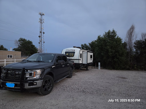 Across the street are three RV sites that the city has provided for free for two nights. Each additional night is $10. The lots are graveled and have 30/50 amp...