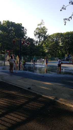 Fully renovated kidโs heaven with areas for 5-12 years and areas for younger kids as well. Featuring dozens of swings for different ages of kids, obstacles course, climbing areas, ๐, wet area opened for the summer, tables and benches at the corner of the park, a bathroom at the middle of the park. No bike riding, scooter riding in the park. Unleashed dogs is not allowed. Plenty of ๐ฒ for shades, best park...