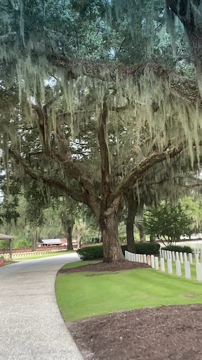 After driving around this national Cemetery, we decided it has to be one of the prettiest locations. It is August and the lush green foliage Spanish moss, and garden like setting puts this cemetery at the top of our list in terms of natural beauty.