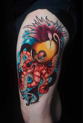 I went to dark tide to get a sleeve done. I went in to get my consult and put down my deposit, that’s where I met with my artist, Mike. Super cool guy, we talked about my design, which was a ship, Poseidon and a kraken. I showed him some pictures for references and he told me his prices, we scheduled it and that was that.