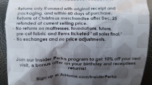 Read moreThis store is massive, and it's truly a treasure trove for anyone looking to spruce up their living space without breaking the bank. What I love most about At Home is the sheer variety. They have everything from furniture and rugs to wall decor, kitchenware, and even seasonal items. It felt like walking through dozens of specialty stores all under one roof. I was particularly impressed with their selection of throw pillows and decorative accents; I found so many unique pieces that really helped tie my room together. The prices are also incredibly reasonable, especially for the quality you get. I was able to find stylish and durable items that fit perfectly within my budget. While the organization can be a bit overwhelming at times due to the store's size, it's definitely worth taking your time to browse. If you're on the hunt for home decor that's both affordable and fashionable, At Home is definitely the...