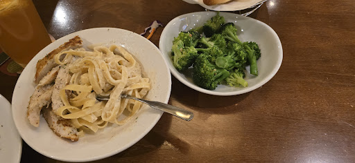Olive Garden ...I tried the Chicken Alfredo with Broccoli. When it came out, it was on 2 separate bowls. Totally not what the picture showed. So I inquired and he said my bowl would be too full. Then I asked for a plate and he brought me a saucer.