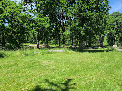 Read moreThe trail/plastic boardwalk is bumpy, but my kids love to ride their bikes on it. As they get older, they play on the logs more, but there are toys (including a sandbox and toddler swings) for younger kids as well. There is also a field, a covered picnic area, tennis courts, and an ADA outhouse. Parking is limited to maybe 8 spots and there are usually people with dogs here (which is awesome...