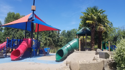 Read moreA nice large park atop a hill on a trail that connects to much of hillsboro. The park consists of many slides, two separate swing structures, there is a pirate theme to the playground itself of course. There is a small structure better suited for younger children next to the sand box, and across the way down in the back there is a larger structure with more advanced features like climbing and monkey bars for older more advanced child play. There are plenty of teenage trees surrounding the park that give it nice picnic areas to set up a rest stop. There are also two picnic tables tucked under some trees that make a perfect place to stop and do projects or just rest from the heat of the sun. There is a small concrete path around the whole park and children can bring there scooters and circle and race if so inclined. There is no bathroom, only a large porta potty.. bummer. There is a drinking fountain, but when I was there with my family for some reason it was turned off. It made us all very sad because on our journey to reach the park we drank all our water, and was unable to replenish because the city had turned it off?! I hope that they soon trun it back on so that everyone who comes can have access to water...