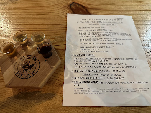 Read moreLoved our tasting flight, additional pour, and mead-ginger ale-OJ cocktail! Always fun learning about mead and meaderies, definitely worth a stop if you're in or around Bedford. Cozy and rustic log-cabinesque mead hall in a...