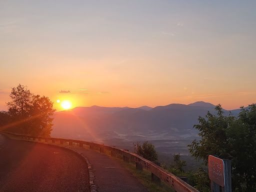 Best view of Flattop, Sharp Top, and the rolling mountains of Buena Vista to the left and the rolling mountains of Roanoke to the right. This is a photographer's dream. Its beautiful. Perfect for sunrise photos, moonrise photos, sunset photos for color change of the mountains, astrophotography is great because you have an open sky but also the curve of the road to beautifully capture the BRP, Also the mountain blocks the wind so you can bear the cold of a clear winter night, and the spot is perfect if you wanna capture season changes! The colors are in full bloom during the fall, the green boom in the spring, the hazy blue glow and snow capped mountains for the winter, and the lush full forest for summer. If you're a photographer check it out. Endless...