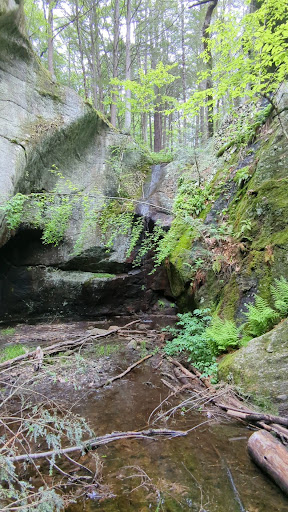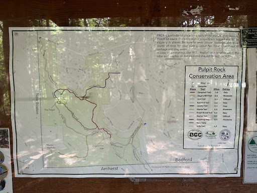 I discovered more than I expected when I visited. I thought 🤔 I would just see 🙈 a huge rock 🪨 and a trail. Instead, I visited a ravine, remnants of a mill and dam, a huge beaver 🦫 dam, a small waterfall, well maintained and marked trails and Indian Rock 🪨. I also came across a kiosk with historical information ℹ️ about the area. Unfortunately, I also came across graffiti as well. I was not 100% certain which rock was Pulpit Rock. Were the huge rocks at the ravine Pulpit Rock or was it the rock just before it? I did visit the bottom of the ravine. It was impressive looking down 👇 and up! I explored the main trail. It connects to the Pulpit River Trail in Auburn. Bring bug 🪲 repellent, water and a good pair of shoes 👟! 🐕 Dogs allowed. Please clean up after them, thanks 👍! Not wheelchair ♿ or stroller accessable. There are a lot of small rocks and (I am Groot!) roots on the trail. Keep an eye 👁️ on your kids and pets if you visit the ravine! The drop is significant and there is only one safety rope! The trail is easy to moderate. I...