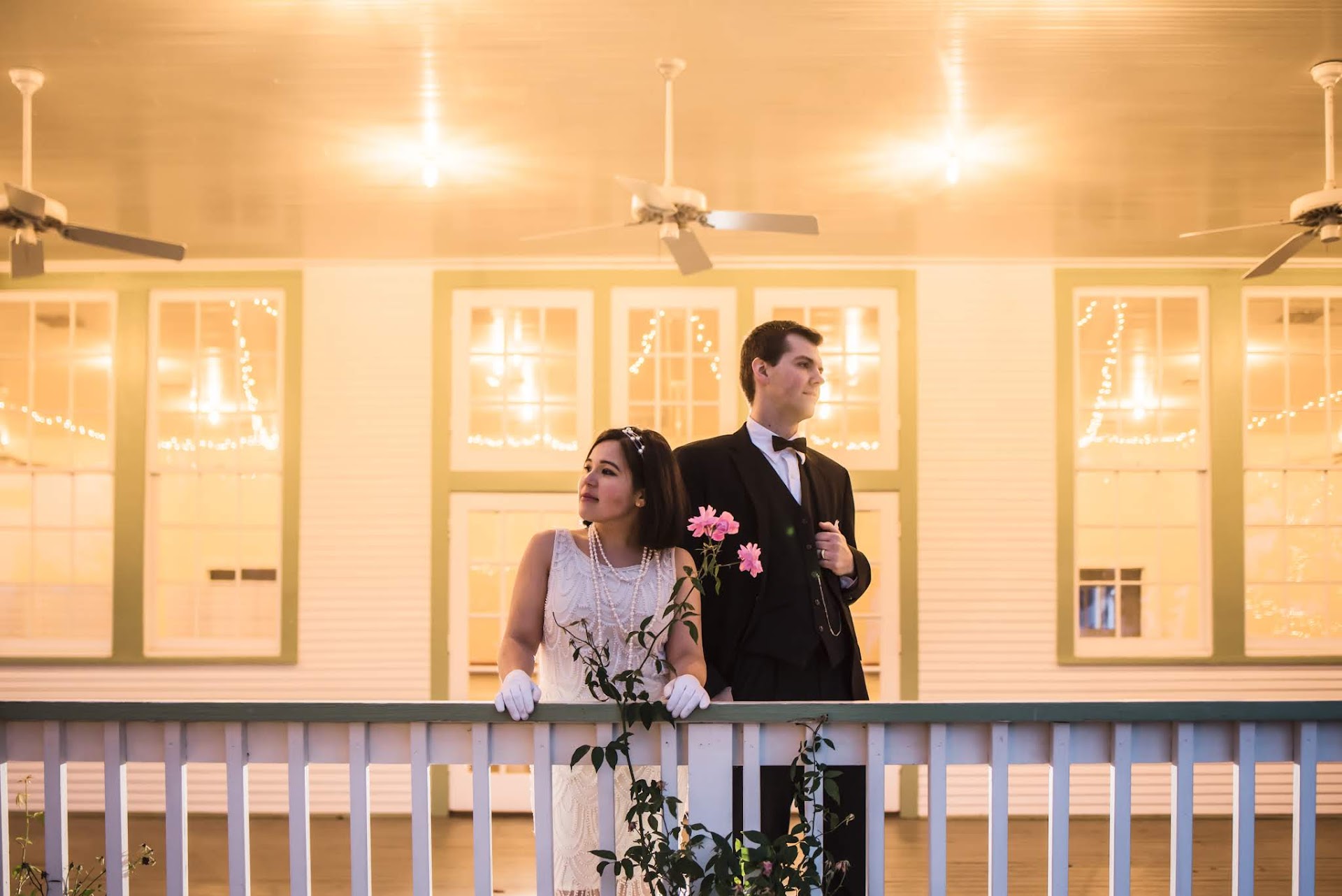 We utilized multiple areas that enhanced the entire experience for our guests and wedding party. The bridal party arrived at the Brideâs Cottage about 10:00 am to prepare and have brunch. The groom and his groomsmen gathered in the Cantina sometime early afternoon. Our guests began arriving about an hour before the ceremony where they were welcomed with beer and wine served under the oak trees in the âstreetâ in front of the chapel, or the small side of the Fitzhugh Building for those that needed to be in the A/C. The ceremony was in the chapel where we had about 120 guests, seating with pews and chairs for about 100, and about 10-20 standing. It was cozy and intimate, but not uncomfortable for a relatively short ceremony. Then the guests moved to the small size of Fitzhugh for cocktail hour. Besides the fantastic antique bar, the caterer created two beautiful tables with appetizer presentations and an infused water table. There was a table with childrenâs activities like crayons and playdoh, a sitting area with beautiful vintage furniture rented through SHR, and an antique bureau that had family photos. Also in this beautiful space was a sign-in table with some vintage props also available through SHR. The guests were then ushered into the large side of Fitzhugh for dinner and dancing. We used the 10 round tables available with our rental package and added four beautiful farm tables to mix with the rounds to add interest. During the reception, a few guests went to the lovely front porches to visit and smoke cigars, even though it had started to rain by that time.