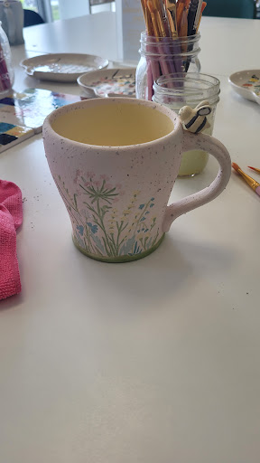 We loved this. It was just what we were looking for. No rush, time to make our projects ours and lots of things to choose from. You should stop by and give it a try. It was nice and quiet. The ladies were so helpful and nice. We are looking forward to going back next month and possibly making a ladies day out of it. Items to paint form 6 dollars and up. I would recommend this! They cup is my unfired product. I will update when we pick up...
