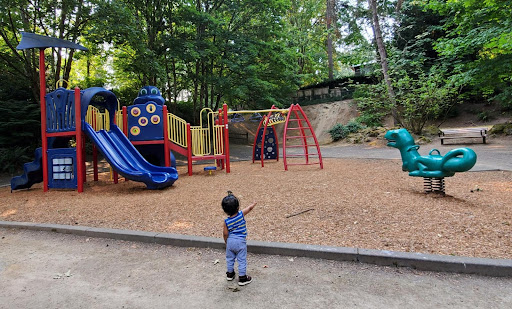 Read moreA sweet little park with a colorful playset (slides, climbing, small fort and ride-a-dinosaur rockers) where I took my nephews for outings before they grew up to be teens. (They have other things to do now.) Jam-packed with goodies including standard tennis courts and one where players practice hitting, short walking trails up and down hills and restrooms at the top. The park is clean and well-maintained with trash and recycle bins. There are two Pokemon Go stops (if you or...