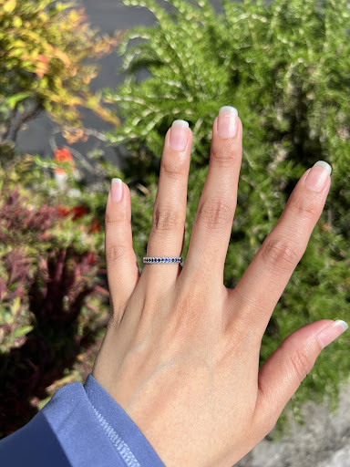What I didn’t know was that my friend and Jonathan teamed up with my (now) fiancé behind the scenes. Together, they coordinated the surprise of a lifetime. Thanks to Marci Jewelry, my dream ring—a stunning band with blue sapphires and a diamond pavé—was ready in my size, in time for a magical proposal I’ll never forget.