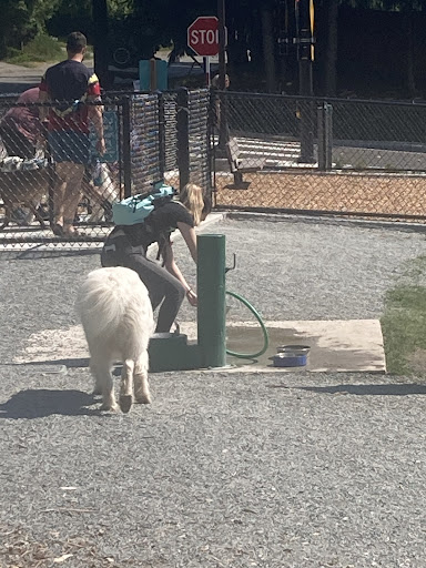 Read moreThis park reminded me of the Flintstones cartoons, set in the stone age. This park has big huge stones and a nice playground for kids. A big covered picnic area with bbq grills we’re in use for parties or whatever. The dog park is grass and has a covered picnic table and a HOSE to wet or clean up your dog after playing. Most dog parks don’t have a hose only Luther Burbank, so that’s a big plus. The trails outside the dog park are steep downward trails which i couldn’t get down with my wheels. Nice people also helpful as the garbage cans for poop bags are located outside the dog park…???? ...