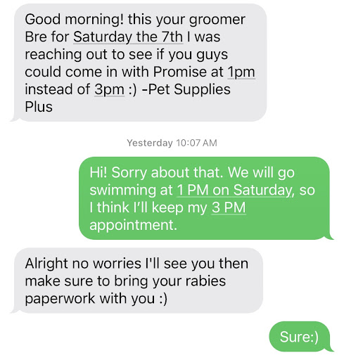 Five stars because I want them to succeed and I know theyâre trying hard. Have already shopped there, had my dogs nails clipped there, had some problems with booking online and sent that feedback on as well. Everyone is friendly and accommodating.