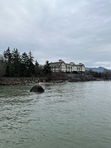 I booked a two night stay and massage as a splurge to get some much needed alone time (#momlife). On my first night, I received a voicemail that my massage the next day was cancelled, as the therapist was sick. Disappointing, but understandable. I had a nice meal and friendly, quick service in the bar, and a lovely walk along the boardwalk/trail to downtown and back. The next morning, I awoke to a large puddle on the bathroom floor in front of the shower and a steady drip from the ceiling. I wiped up as much as I could with the bath mat, placed the garbage can under it, and called the front desk to alert them. A man whom I assume was the manager, said without missing a beat, "Oh, that's the HVAC -- sorry! I'll send up the engineer to look at it." Since he quickly knew the cause, and upon closer inspection of the tile under the leak revealed that slate was delaminated / water damaged, I assume this is an ongoing issue. The engineer arrived soon after, inspected the HVAC, told me it was likely from the room above mine, and said I'd probably be switched to another room. He put the one remaining clean washcloth into the waste bin to sop up the water dripping there. I went down to breakfast on the deck (lovely service and yummy food again), and came back to my room assuming there would be a voicemail about what the plan was. No voicemail, and I still wasn't equipped to take a shower, so I went out to walk around Lake Padden. Upon my return, I inquired at the front desk about the status of my room and was told that they were moving me to the suite next door and would let me know when it was ready. I realize and appreciate that this upgrade was likely an attempt to make up for the hassle of the morning, but really wanted to take a shower and retreat to my room at this point -- not go pack up all my stuff. When I got to my room, the housekeeper was outside and my door was open as though she was cleaning or about to clean it (though I had asked for no housekeeping, and the mess from the leak was still present in the bathroom). She looked confused and asked if I was checking out, and I let her know that I would be waiting there until my new room was ready. A bit later, the young woman from the front desk knocked on my door and gave me the keys to the suite. Upon entering, I immediately noticed a musty smell, and in hindsight should have said something to management right away. However, I just wanted to get settled and enjoy the rest of my stay, so I drew a bath in the amazing bathtub and watched TV while I soaked. I kept noticing the musty smell when I was in the "kitchen" area (it's just a coffee maker, sink, and mini bar), but could not find the source. Eventually, I got a pretty bad headache, ordered a yummy dinner from room service, and went to bed. I woke up still with a headache, opened the door to the shower and was hit with the musty smell again. As I took my shower, I noticed that some of the the slate tiles seemed to have a mold-like pattern on them, and one looked like it had mold/mildew where the grout should be. I took the washcloth and wiped at some of it -- it wiped away fairly easily and left dirty stains on the washcloth. Yuck. After my disconcerting shower, I packed up my things, went down to breakfast on the deck (not quite as good as the day before, but not terrible), and went to check out. I let the friendly young man at the front desk know about the mold, and he wrote a note on a post-it for housekeeping and said he would pass it on. Overall, not the respite I was hoping for on this trip. The Chrysalis has an amazing location, friendly staff, and good restaurant, but seems to need more upkeep. Dark slate tiles can hide a lot of dirt/issues in the bathrooms if not examined regularly and closely, and I would hope that more attention would be given to ensure that they stay clean would be a priority. I would also hope that an ongoing leak in a room would be 100% remedied before renting out...