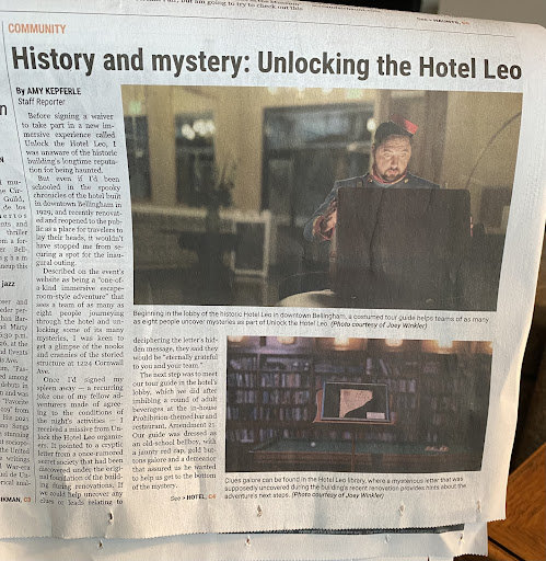 Read moreFirst I found an article about the “Unlock the Hotel Leo” in a newspaper 📰. So I decided to try it. Overall it was a great 70 minutes of the immersive experience and escape room mix. A lot of work has been invested in every detail of the adventure. Our guide aka “room master” was dressed in 1920s era. I love every aspect of our journey in the hotel. Highly recommend it to everyone who lives or visits Bellingham! The site mentions if you are a guest of the hotel then you would have even more adventure of the hotel’s mysterious secrets. Interesting to try it! Thanks to Chris a creator of this venue and a whole team who helped him to build it! Only recommend to remove some left price tags from...
