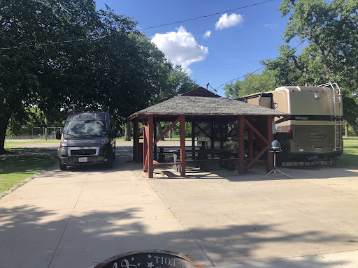 Read moreI love small town RV parks and this one is a super gem! You can stay up to 10 days free in a 60 day period, but you can/should leave a donation. There is a metal tube for it on the left as you leave. The campsites have a covered pavilion with two large picnic tables, plus one that’s not covered set by a fire ring. You share the spot with another rig, but the way they set up the plug-ins, you retain your privacy. There are water spigots close by and a dump station on the premises. The park has tennis, basketball, frisbee golf and even a community pool, plus a small river. I usually had 2 strong...