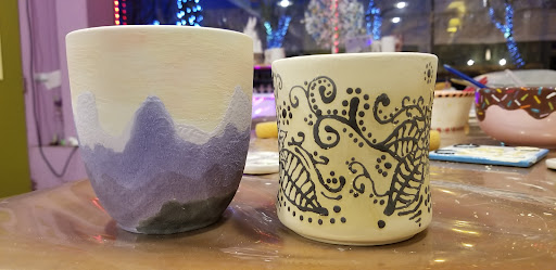 Very cool place. Lots of options of art you can do and try. They offer some class. However my wife and I just decided to go and try for fun to make yourselves mugs. She was able to accomplish a great job with details on her mug. My shades of mountains was worth a try. We both love the mugs and had an incredible fun time working on it. Whatever questions you may have. There is a nice and resourceful lady ready to give you tips, a hand and ideas. If you are looking for some fun and art with you significant other or kids, this is worth a try. You should check it out. Price wise, it is not so bad since you are paying for the experience and resources, materials. If I am not wrong, we spent about 60 dollars total to make the mugs and have it glanced. BTW, you leave to mugs at the store and get them in the following week after being...