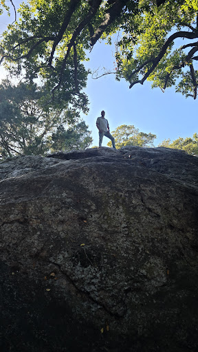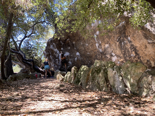 Get a cool glimpse into the past at the native American "bedrock mortars" where they would grind acorns into meal or flour. We had a fun adventure walking through, climbing and exploring and enjoying the sent of the bay laurel trees. Saw some folks talking about rock climbing but didn't stay long enough to actually see them do it. You can see a lot of white chalk all over the west face where climbers channel their inner mountain goat š. It's small but definitely...