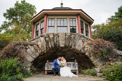 One of our favorite things about this estate wedding venue on Boston's north shore is how easy it is to make amazing photos here. There is a wrap around stone porch behind the estate that overlooking a lake. There is a beautiful garden behind the tea house that feels like you're stepping into the Secret Garden movie. Plus tons of mossy rock walls and unique architecture surrounding this spot.