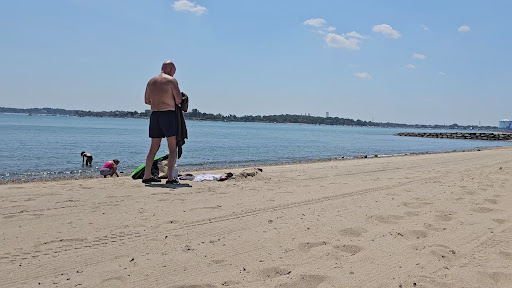 Read moreBeautiful calm beach with a large green space that features a dedicated parking lot, swings for the kids, lots of trash bins and plenty of shade trees. The beach itself is soft light sand with small pebbles and shells near the water - lots of beach glass. It's busy in the summer during the day but in the morning and evening it is a peaceful, uplifting place to walk. Dogs allowed before 7:30 A.M. so if you have puppies they will find...