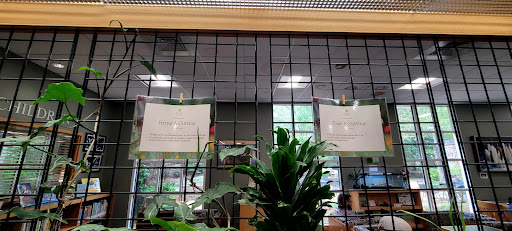Wonderful little library to visit when you need a break from the heat and play, or any time! It's not quiet (it's small, so you can hear everyone sitting together planning their gardens at the tables, so I thought the "no talking on cell phones" rule was odd), but it's fun, and in a wonderful location. There is an accesible bathroom, free wifi, outlets at the tables for devices, toys, oversized children's books, several shelves of plant- and animal-themed children's books, and the adult sections look like they're all botanical-related. There's a free plant shelf (you can donate and/or receive). There are several arm chairs and a few tables with chairs, and a large courtyard with tables and chairs right outside. It would be a lovely shaded spot for a birthday party if they allow that. There's library and gardens bingo sheets for kids to complete for fun and a prize. If you found this review helpful, please give it a...