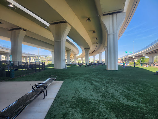 Visited on Fri Mar 29, so glad the dogs and I did. It was a huge treat to them after traveling all day on Thur. I travel alot around the US and never have found a dog park as nice as this one. What a GREAT way the city to use a dead space under the interstate. You do have to have vaccine records with you. (I always do when traveling in case we find things like this). I was charged $20 for 2 dogs- totally worth it to me. I liked there were 3 different sectioned off fenced areas with things for dogs to climb on, water bowls, turf, small water area for a dog to lay down and cool off, and all of these areas were VERY CLEAN. I also liked the clean restrooms where I bring my pets in with me. As this is a difficult task doing when solo traveling.