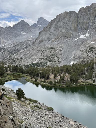 Best enjoyed from up high where you can take in the surrounding peaks. There are a few campsites at the northwest edge of the lake. A lot of animal life since this lake sees less human action; ducks, pika, and a few falcons.