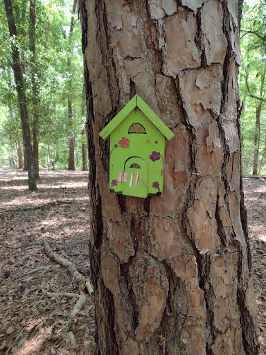 First, my middle daughter took a scavenger hunt from the information kiosk and had a grand time with that. Then, the natural wells, my kids adore those, and we stopped there as we started out on the Floodplain Trail. There were no maps at the kiosk, and we had taken a photo of the map posted, but we were happy to find a box with maps hanging on a post after going through the trail entrance behind the lake. When you get to that, make a right, and when the trail splits, stay right. After that, we walked down, did the boardwalk trail and followed the loop trail down further and....oh my goodness, the delight when we suddenly saw a plastic flower hanging from a tree and realized it was a fairy! Some magical soul turned this hike into a fairy village!!! Little wooden houses on the trees, fairies hanging from the trees, my kids had a ball. The fairies stopped after Harry Potter and then hopped on the Loop Road and walked straight back. This was around 3 miles. Perfect! Just a perfect day.