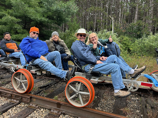 Ā Ā Ā Read moreWell worth the cost for the unique experience of being on the rail road tracks. Saw some very old telephone/telegraph poles and mile markers along the way that our guide, Gary, was kind enough to point out. We had wet, drizzly weather, just perfect for this. Pedaling was not that hard (77 year old with 2 knee replacements last year+ 75 year old with 1 replacement ). Neither of us are particularly active! Tracy & Gary were kind & considerate of my hesitation that I would have the strength/stamina to do this. Only takes 20 minutes to the turn around, very little effort required for pedaling either way, unless you're the only one pedaling. Gary adjusted my seat 2 times, & again once we started, so I could pedal, & at 5ft of height, it was a surprise that the seat had to be pushed back not forward. (At the gym, I can't use a recumbent bike as my feet won't stay on the pedals no matter how close the seat is to the pedals.) Gary rode with us to help pedal & Tracy checked with Gary, halfway to the turn around, to see if he wanted her to join him on our bike to assist as well. How nice is that?? Gary was just bursting with information about the area & the railroad's early days. The tracks weren't used for 12 years & they had to clear the 1+ mile they use now by hand. You would never know they had to clear trees that were actually growing up through the tracks. What dedication! The ride back is on a slight ( emphasis on slight) incline. Don't honestly know if we'd have noticed the incline if it wasn't mentioned. Would I do it again? Yup! But would make sure it was a cool, cloudy day, like today. The remaining trees & shrubs along the track cancel a lot of the highway traffic noise & the scenery is very nice. Except for the little road noise, you would think you are out in the wilderness, there's so much greenery around. We did this 11am, on a Sunday so traffic might have been on the heavy side. I've read the negative comments coming before my post, but honestly can't agree with them. For this tourist attraction to have only been doing this for 3 weeks, they've got their act together! Would like to see a fall color schedule & even one for Halloween! Also put out a tip jar!! You guys deserve a little extra for taking such good care of your customers. Thanks to all! After our excursion, neither of us had any sore muscles or joints, even the morning after. So you can be assured this is not a...