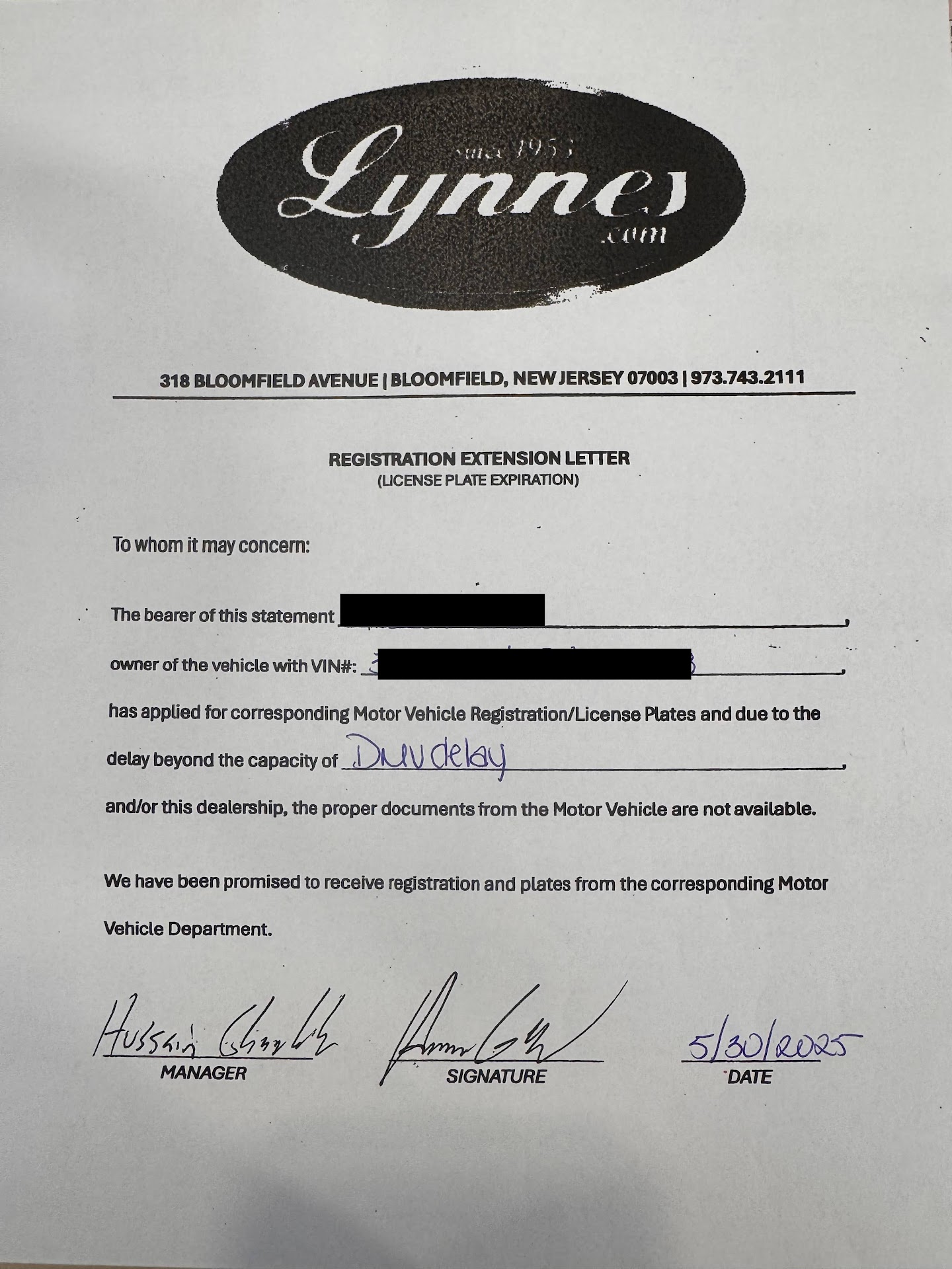 Update: Nightmare. It has been almost 3 months since we purchased the car in cash. We ended up having buy another car in MD, because LYNNES NISSAN REFUSES TO TRANSFER THE TITLE. They refuse to transfer the title or register the car though we paid registration and taxes on July 14th, 2025, at time of purchase, in full. Plan to spend your life calling, filing complaints, and engaging a lawyer. The whole reasonWe sprung the money to buy almost new used car was to get the safety features. Now that he can't drive the car and the money has been spent.We had to buy a junker, which is not safe. There's no excuse for this. Zero. None. Got a call from some new person yesterday, from Lynne's, Nissan promising the title again. If and when we get it, I will update this post. The temp tags ran out almost a month ago and they refused to provide new ones. We have to BUY ANOTHER CAR because these guys refuse to file the paperwork. We can't drive the car we bought and paid for. The people we worked with there to buy the car refuse to return calls. NJ requires title in hand and transfer of title in 10 days. This seems illegal on so many levels.