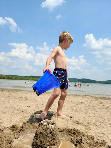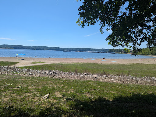 So pretty, and the lake is huge. There was no huge wait line and the beach wasn't too crowded. Two problems though. The first one is the bathrooms. Thankfully there are modernish amenities, but none of the doors have working locks and a lot of the walls and doors plus parts of the floor were chipped or leaning. The second one is that there was no lifeguard keeping the rules. Kids were going over the rope line in the water and running all around splashing adults and other kids. Though this is at no fault of the beach, it would still be nice to have a lifeguard to keep the peace and make sure no one was drinking beer on the beach (which there were a couple). Otherwise great...