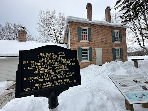 According to the Bloomington Parks and Recreation website, "Pond-Dakota Mission Park is the site of the historic Oak Grove Mission and the 1856 Gideon and Agnes Pond House, pictured at right. Missionaries to the Dakota Indians and farmers and ministers in Bloomington, Gideon and brother Samuel had their roots in Washington, Connecticut. Young Gideon worked as a carpenter and a farmer, and Samuel as a clothier and teacher. During the "Great Awakening," one of the 19th century spiritual revivals in America, the brothers heard the call to give their lives to God's service. Their journey led them to Minnesota in 1834 where they served as farming instructors and missionaries to Chief Cloud Man's band of Dakota Indians at Lake Calhoun and Lake Harriet in Minneapolis. In 1843 the brothers followed Cloud Man to the Minnesota River bluff location where they founded the Oak Grove Mission. Explore this park year-round to learn more about the life and times of Gideon and Samuel Pond, the Dakota people and the missionaries who worked with the Dakota people during the mid-nineteenth century. Step back in time at the Gideon and Agnes Pond House and see what life was like in early...