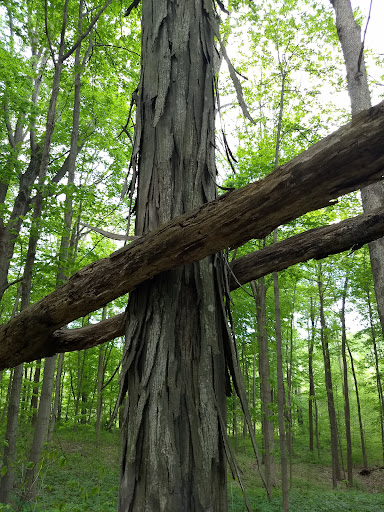 Right now (June 2025), the preserve is still recovering from the high-wind storms during spring. All pathways are, at some point, inaccessible due to fallen branches, fallen trees, and overgrowth (poison ivy, bramble, and ticks). One fallen tree even took the ground of the pathway with it! Whichever path you take, you’ll eventually have to turn around. And the fun hilly path in the northeast area is totally blocked off.