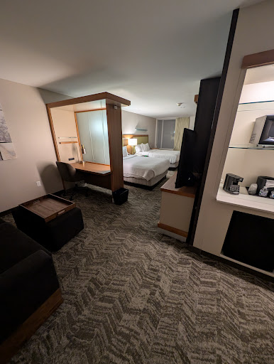 Read moreHad to come down to Bloomington for a funeral and got a good rate through Marriott Rewards. This is a very nice hotel in downtown that is within walking distance of everything that is going on here. The hotel is only three years old and it shows compared to other Springhill Suites that I have stayed at previously. The hotel and rooms are very modern. We are staying in a two queen, sofabed suite and it is very spacious. The use of the sliding door in the bathroom and the walk-in closet are nice touches. The beds are a little hard which bothered my wife but I slept comfortably. Also, the door for the bathroom has a glass panel which allows the light the light in the bathroom to illuminate the room in the middle of the night which our daughter did to us. These are small things though. The lobby is very nice with a bar. I saw many guests congregating there last night as we passed through. The space is very open and inviting. The breakfast area is behind the bar and it is very nice. Most hotels have there breakfast area in a small, cramped space but not here. The area allows guests to get their food without feeling like they are on top of one another. This good because the food is excellent. The staff here is also very friendly and professional. Josh, the young gentleman who checked us in last night, was a pure delight. All the staff have been great. Asking how the room was, if we were enjoying our stay, adding that extra little touch. They even have students from the university studying Tourism and Hospitality working here. A great experience for them. I highly recommend staying at this hotel if your are in the...