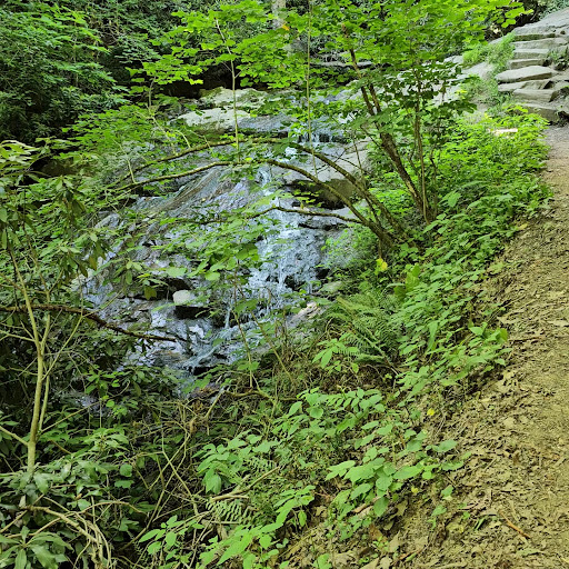 Parking lot is too small and full so we parked at Davant field and took Broyhill Park trail to get there. I recommend eating before going, there's an awesome gazebo pavilion overlooking a creek at the Davant field, for a picnic. Bathrooms at Davant and Memorial park. It's a strenuous 2.5 hour trail and kids will need the fuel to get through this one. And water bottles. So the trail is steep, very steep and twisty, not the best for dogs or humans with joint issues🤣 The waterfalls get bigger as you go down ( way bigger than I was expecting ) Very impressive. Awesome areas for kids to play around in at bottom of each fall but shoes with a grip are a must and supervision. There are no handrails and you can freely roam around the top of these falls which are extremely high up. Side trails to access top of falls do loop back in so you don't have to back track which is nice. Afterwards you can just stay parked at the field and walk into town. Memorial park playground is awesome for kids. So this place definitely exceeded my expectations, absolutely beautiful, but prepare for it for sure. Aster was blooming and that...