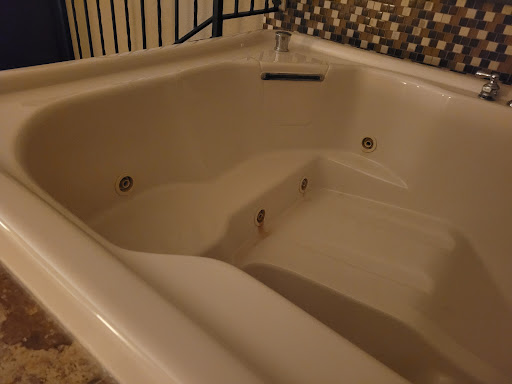 Read moreMy stay is July 5-7, 2025 The room is a King with hot tub. The hotel is very nice, looks clean and well maintained. The staff is super friendly. This hotel allows pets. I am allergic to dogs. That is why we have the hot tub room, pets aren't allowed in this room other than trained service animals. The hot tub room was only slightly more expensive; if it had been a lot more, I would have demanded a refund due to the drain being broken on the hot tub, rendering it useless. (UPDATE/EDIT) It turns out that the drain isn,t broken, it was removed because the water would not shut off to it completely. My biggest complaint is that despite the fact that it looks so clean, the room smells musty, which I believe is from the contual running water in a non-vented room. The room is huge and the staff turns the little air conditioner up to a higher temperature to save energy, which doesn't dissipate the moisture. We informed the staff about this issue and were told that their maintenance staff had already gone home. She further made it sound as if they were unaware of the issue, but two things refute that, 1) the fact that the drain stopper had been removed to prevent the water from filling the tub, 2) the fact that as a plumbing contractor, I can assure you that the water stains shown in the accompanying pictures, do not happen overnight.