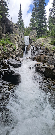 Read moreThe highlight of the Spruce Creek trail, and probably one of the better 'waterfalls' in Colorado. Colorado water features are never very impressive, and waterfalls are usually no more than an impressive set of cascades versus the typical waterfall seen elsewhere in the world. There are still quite a bit of cascade features about this waterfall, but it's a very long series of steep sets of cascades all stringed together along the side of the mountain which is a difficult stretch to trek from bottom to top. My friend Veronica brought me here and I hope to return many times in the future during different seasons for more photographic...