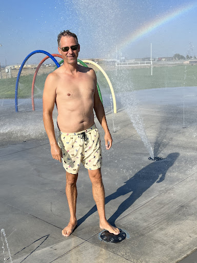 Quick note. If you arrive and the splash pad is not on, jump on the big black round mounds near the edges to turn it on. There are three of them; one for each section. And I mean jump on them. Like you are an excited kid ready to play...