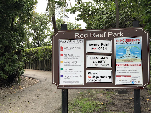 Read moreOur family absolutely loved our time at Red Reef Park! Following others suggestions, we parked across the street for the $3/hr parking since we have a little one and knew we wouldn't be there all day. It is $20/all day at the park. The walk across the street was really easy with a crosswalk. The park itself was beautiful with plenty of shade, play set, rinse showers, bathrooms and tables. But of course the real gem was walking the boardwalk and getting on the beach! The beach was near empty both days we went (early Dec '19) so it really felt like a slice of paradise! They have a machine that rakes the sand in the morning and lifeguard on duty. The best part to me was the green foilage on the backside rather than typical beach areas that have the hotels in view. It adds to the overall ambiance and it's exactly why we chose to come here multiple days rather than use the beachfront at the hotel we were staying at in Delray. Reviews mentioned great snorkeling, too, but my husband who is an avid diver and traveler was not overly impressed with the snorkeling. However, the water was wonderfully warm and clear, and there were definitely some fish to see with our highlight being the guitarfish and a bunch of colorful baby fishes. Without a doubt we would go back if ever in...