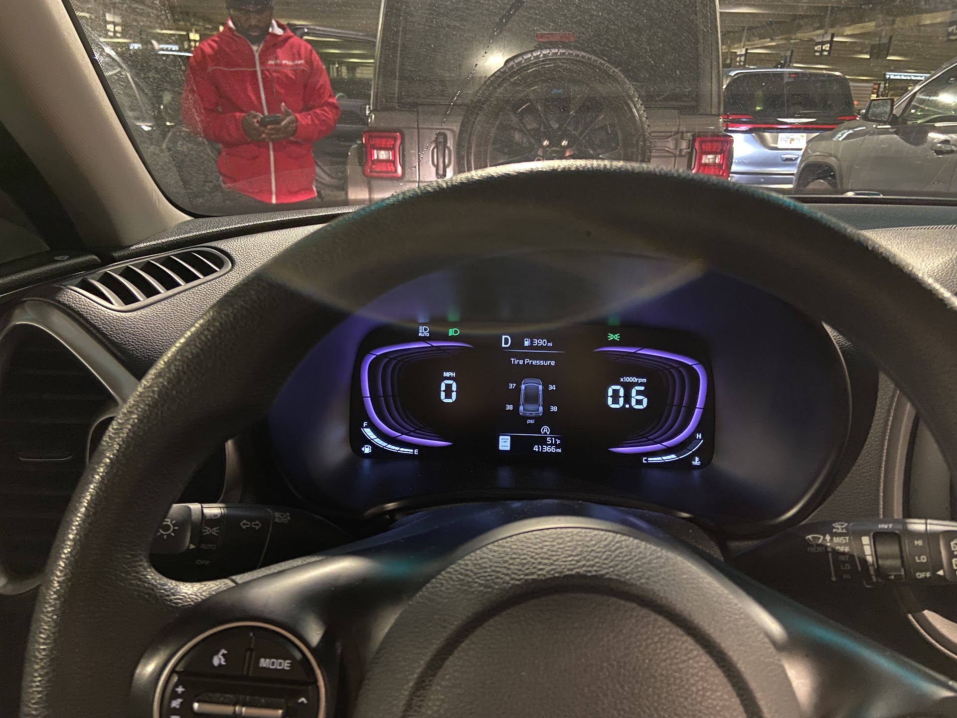 The car appeared to be fine and the agreement seemed to match our reservation so we drove off, glad to be out in about 1 hour. However, during our week away, the tire pressure light came on. The appropriate pressure in that car's tires is 33PSI. When I figured out how to see the tire pressure of all tires on the dash, one of the rear tires had pressure of 49PSI and the other rear tire had 26PSI. Do they think it's OK if it averages out? The front 2 were slightly under-inflated but not enough to trigger the warning. While trying to balance all 4 at a service station air pump, I noticed that the tires weren't a matching set from the same manufacturer and some of them were pretty beat up looking.